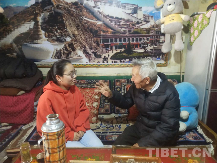 圖為學(xué)生在家中聽長輩講述61年前的故事 圖片由拉薩中學(xué)提供