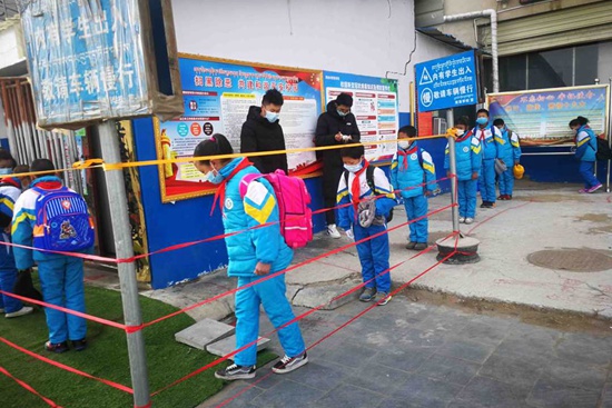 3月30日上午10時,記者在西藏那曲市浙江中學門口看到同學們穿著干凈整潔的校服,在老師們的統(tǒng)一指揮下依次排隊前后間隔一米距離,按順序測量著體溫、擦拭著免洗手液、換戴學校發(fā)放的新口罩走向教室。[詳細] -