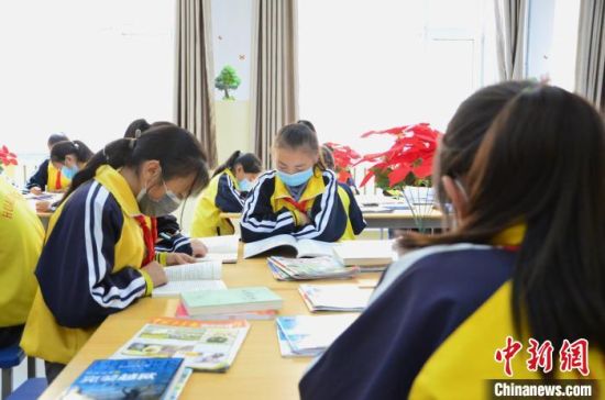 圖為化隆縣第一小學(xué)的學(xué)生們?cè)陂営[室讀書(shū)?!◆?shù)り?yáng) 攝