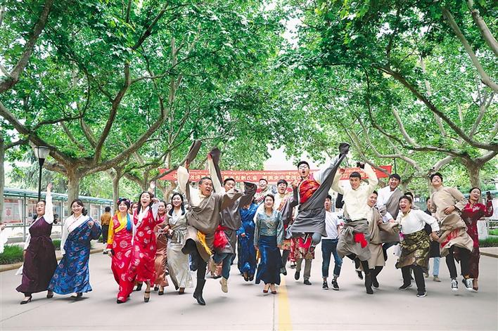 畢業(yè)后的西藏民族大學2018屆的學生們走在校園的林蔭道上。通訊員 恰多 攝