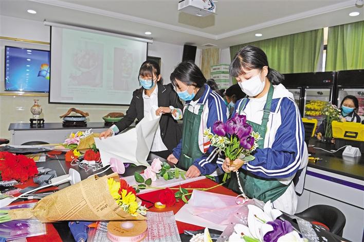 拉薩市第一中等職業(yè)技術(shù)學校學生正在學習插花技藝。記者 唐斌 攝