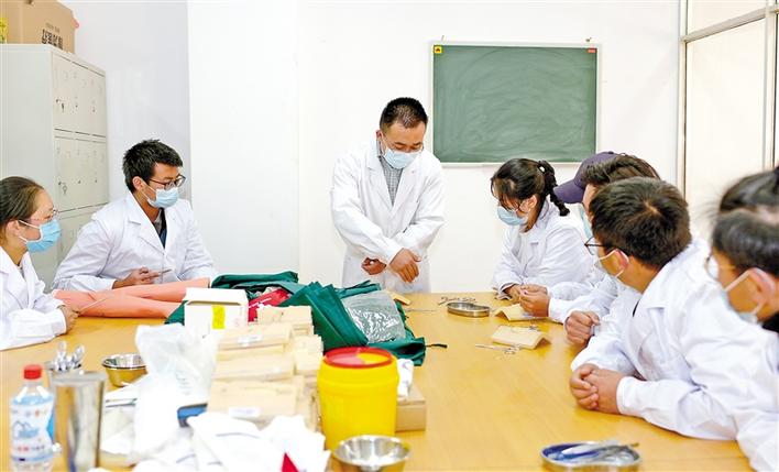 圖為西藏藏醫(yī)藥大學(xué)援藏教師遲德財(中)在給學(xué)生授課。