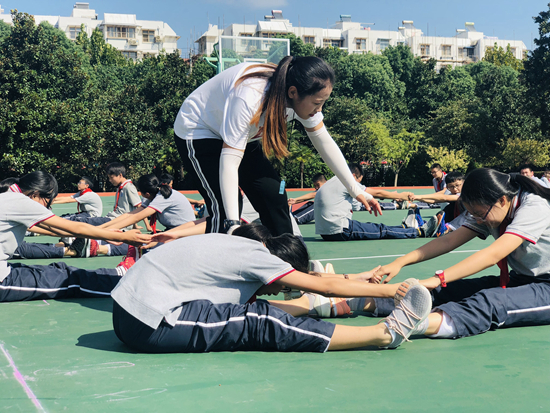 南京十三中紅山分校的體育老師在指導(dǎo)學(xué)生進(jìn)行體育活動(dòng)。南京十三中紅山分校供圖