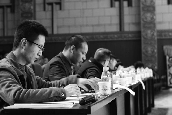 評委查看選手資料。記者 秦盼 劉凡