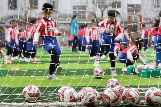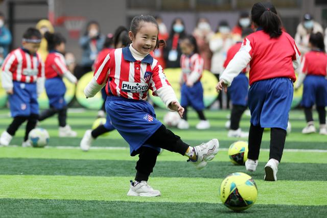 12月7日,淮北市第二實(shí)驗(yàn)幼兒園的小朋友在足球課上學(xué)習(xí)踢足球。安徽省淮北市第二實(shí)驗(yàn)幼兒園是一所“全國足球特色幼兒園”。該園把足球列入幼兒園體育課教學(xué)內(nèi)容,通過開設(shè)幼兒足球趣味練習(xí)、足球游戲等特色課程,向孩子們傳授足球基本知識和技巧,從小培養(yǎng)孩子們對足球的興趣,讓他們感受足球運(yùn)動(dòng)的魅力,健康快樂成長。新華社發(fā)(萬善朝 攝)