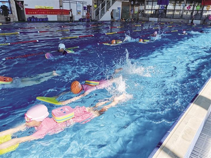 小學(xué)生游泳培訓(xùn)現(xiàn)場(chǎng)。