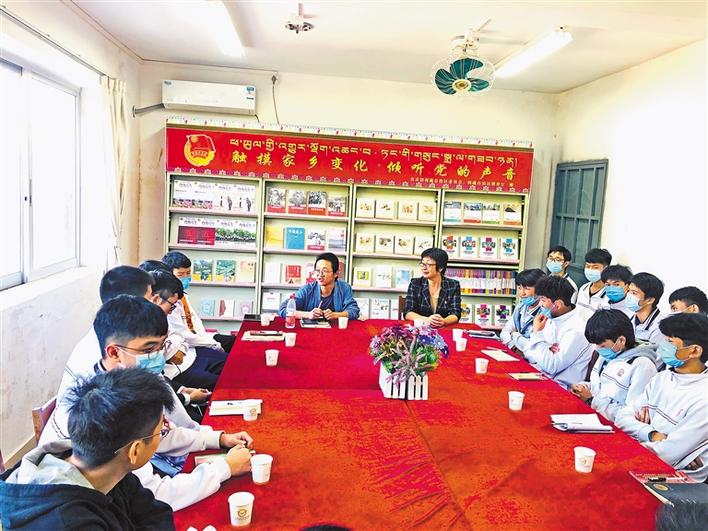 宣講會(huì)結(jié)束后,共青團(tuán)西藏自治區(qū)委員會(huì)副書(shū)記格桑卓瑪、西藏青年報(bào)社副社長(zhǎng)洛桑頓珠、內(nèi)地西藏班(校)管理中心工作人員廖羨等與內(nèi)地西藏班各族師生代表進(jìn)行了座談,詳細(xì)了解了他們的學(xué)習(xí)和生活情況,傾聽(tīng)了參會(huì)者的活動(dòng)感想、感受,并就如何進(jìn)一步豐富活動(dòng)內(nèi)容征求了意見(jiàn)、建議。