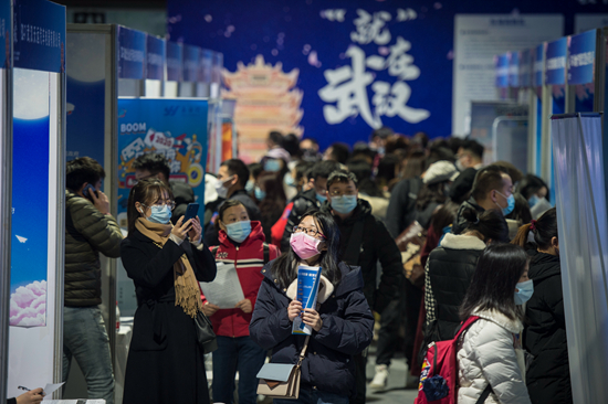 12月2日,2021屆全國普通高校畢業(yè)生就業(yè)創(chuàng)業(yè)促進(jìn)行動(湖北·武漢)對接大會在洪山體育館正式啟動。人民視覺供圖