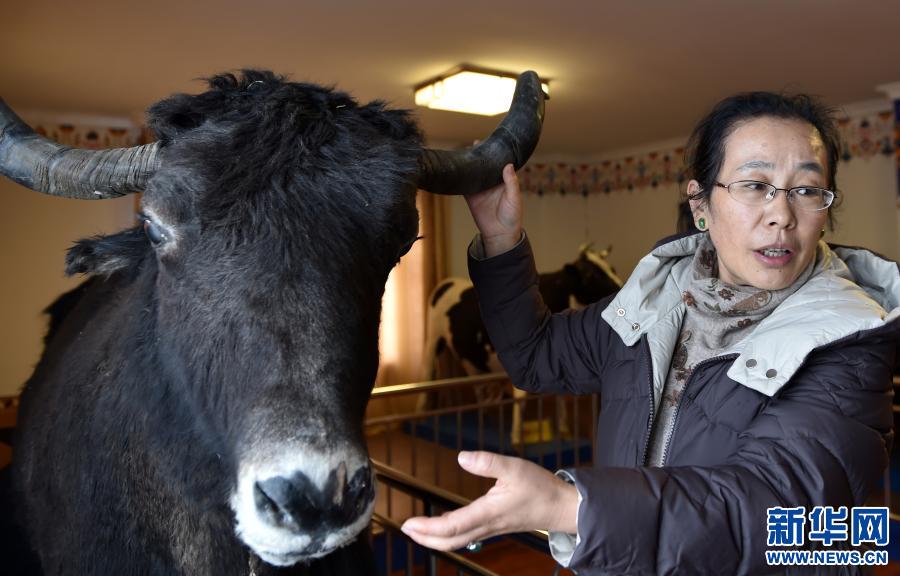 2019年2月28日,在西藏自治區(qū)農(nóng)科院畜科所,姬秋梅利用牦牛標(biāo)本講解牦牛生長(zhǎng)特點(diǎn)。1988年,姬秋梅從西藏民族學(xué)院(現(xiàn)西藏民族大學(xué))農(nóng)牧系畢業(yè),被分配到西藏自治區(qū)農(nóng)科院畜科所,從事牦牛研究工作,后在中國(guó)科學(xué)院地理科學(xué)與資源研究所繼續(xù)深造,并出國(guó)留學(xué)獲得博士學(xué)位,2002年歸國(guó)。新華社記者 覺(jué)果 攝