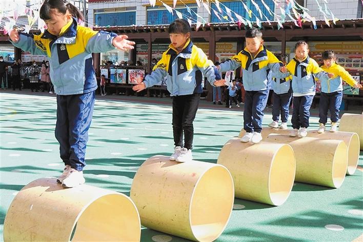 圖為山南市實驗幼兒園的孩子在表演滾輪節(jié)目。巴桑旺姆 攝