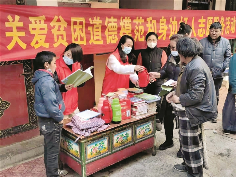 28日,拉薩市委宣傳部機關(guān)黨支部志愿服務隊深入我市道德模范和身邊好人家庭,開展慰問幫扶、送溫暖、獻愛心活動,還清掃街道,營造了干凈整潔的環(huán)境。