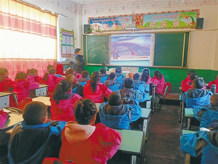圖為昌都市洛隆縣馬利鎮(zhèn)第二小學(xué)師生在收看全國兩會盛況。圖片由昌都市洛隆縣馬利鎮(zhèn)第二小學(xué)提供