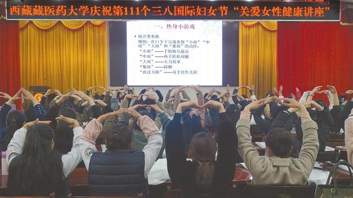圖為西藏藏醫(yī)藥大學(xué)的女性教職工參加“關(guān)愛女性健康講座”活動現(xiàn)場。