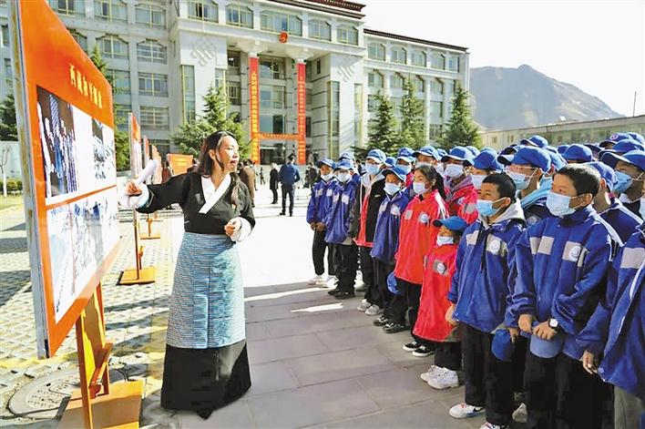 拉薩組織學(xué)生參觀“西藏和平解放史”展板活動(dòng)