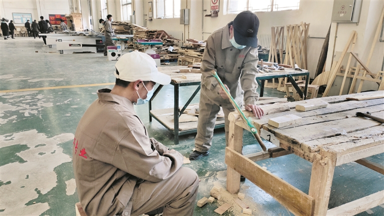 圖為該校木工專業(yè)的學(xué)生正在實(shí)操練習(xí)。余洋洋攝