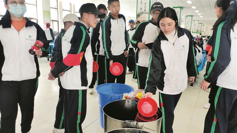 中午13時(shí),在拉薩北京實(shí)驗(yàn)中學(xué)食堂里,學(xué)生有序排隊(duì)取餐,根據(jù)“吃多少拿多少”的原則進(jìn)行點(diǎn)餐。用餐結(jié)束后,學(xué)生排隊(duì)放置碗筷,記者注意到,大多數(shù)學(xué)生用過(guò)的餐碗非常干凈,沒(méi)有浪費(fèi)主食的情況,用來(lái)裝食物殘?jiān)你锼袄锊](méi)有多少被倒掉的殘羹剩飯。