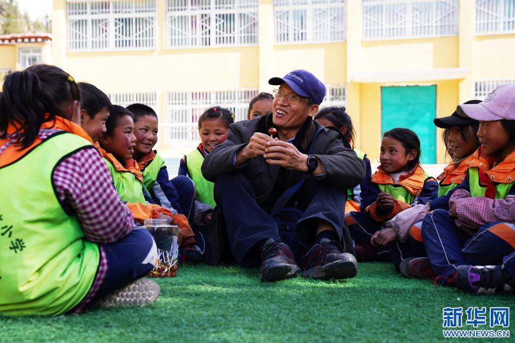5月1日,在西藏昌都市類烏齊縣伊日鄉(xiāng)小學(xué),李純民(中)和學(xué)生們交流。新華社記者 黃臻 攝