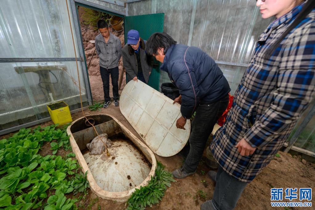 5月2日,在西藏昌都市類烏齊縣濱達(dá)鄉(xiāng)濱達(dá)村,李純民(左二)在當(dāng)?shù)卮迕裣虬桶偷牵ㄓ叶┘抑胁榭凑託夤薜氖褂们闆r。新華社記者 劉金海 攝
