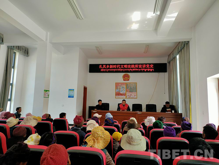 圖為山南扎囊縣扎期鄉(xiāng)新時代文明實踐所志愿者宣講黨史 扎囊縣 供圖