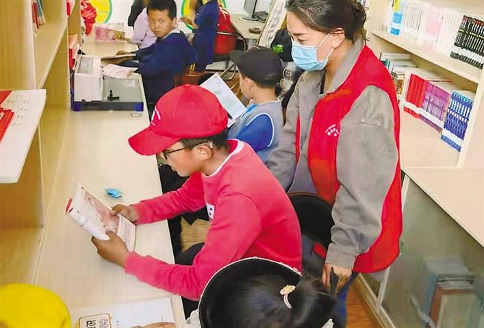 圖為志愿者在為孩子們輔導(dǎo)暑假作業(yè)。記者 盧文靜 攝
