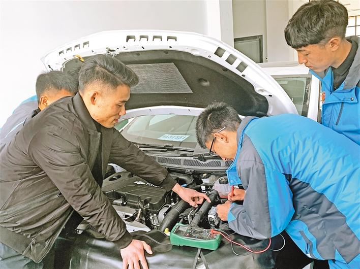 圖為林芝市職業(yè)技術(shù)學(xué)校汽修專業(yè)學(xué)生在老師的指導(dǎo)下進行實操訓(xùn)練。記者 張猛 攝