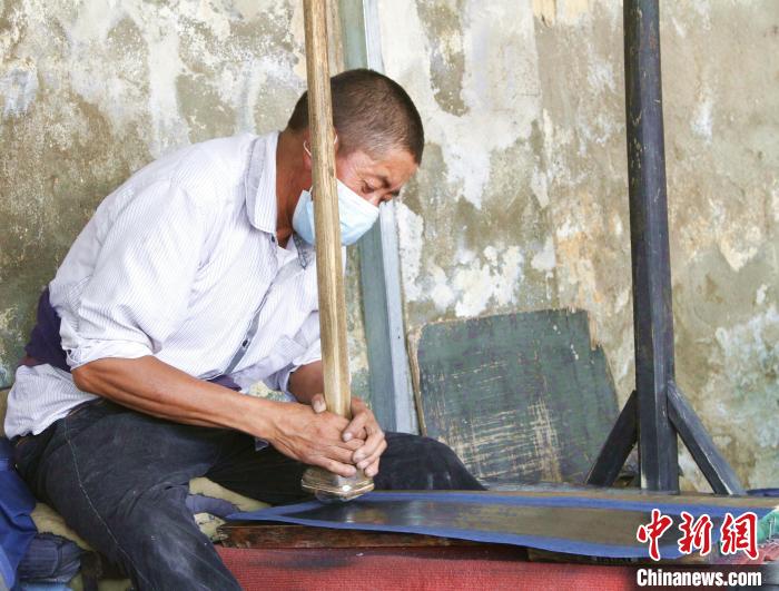在拉薩市尼木縣,手藝人正在加工雪拉藏紙。 冉文娟 攝
