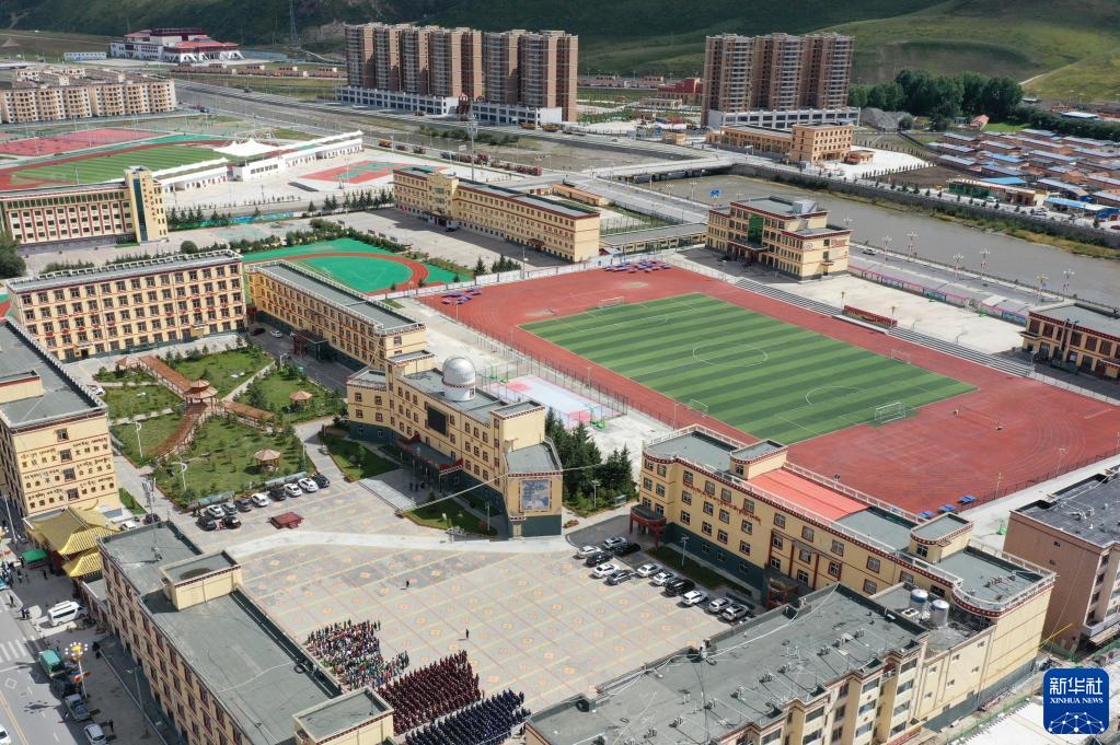 這是8月30日拍攝的碌曲縣藏族中學(xué)(無(wú)人機(jī)照片)。新華社記者 杜哲宇 攝