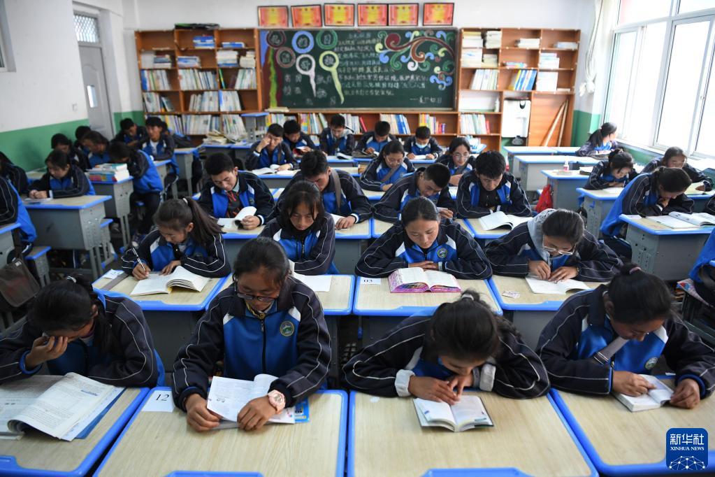 碌曲縣藏族中學(xué)的高三學(xué)生在教室里看書(shū)(8月30日攝)。新華社記者 陳斌 攝