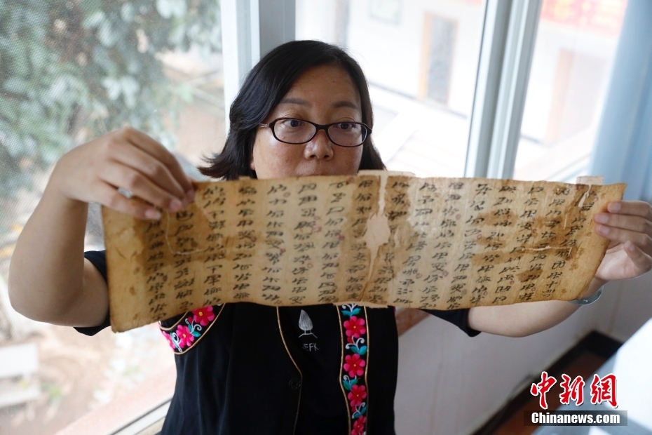 9月8日,云南楚雄,修復師檢查剛修復出來的古籍。楚雄彝族文化研究院位于云南省楚雄彝族自治州楚雄市,是云南省從事彝族文化專門研究的社會科學研究機構。該院始終注重對彝文古籍的收集、翻譯、整理等搶救性工作,現(xiàn)已收集了近3000部彝文古籍。 中新社記者 李嘉嫻 攝