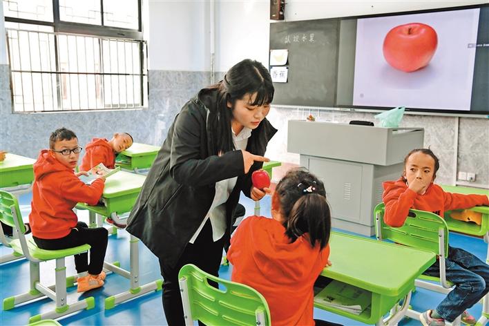 拉薩市特殊學(xué)校的老師通過圖片、實物讓孩子們認知水果?!∮浾摺√票蟆〉ぴ鋈号唷z