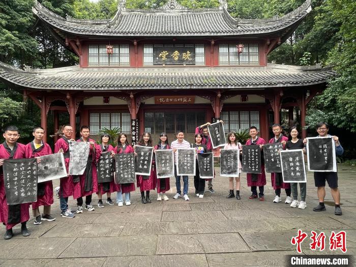 上香、祭文、行祭拜禮……在三蘇祠,臺灣大學(xué)生穿上漢服開展了祭拜活動,深入了解了中國傳統(tǒng)文化和禮儀。同時(shí),在趣味拓片活動中,不少學(xué)生做了“但愿人長久,千里共嬋娟”字樣的拓片,表達(dá)了對中秋佳節(jié)的美好祝福。