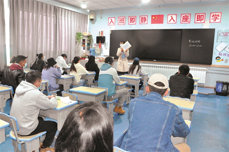 圖為拉薩市招聘村(居)科技專干等基層四類人員筆試現(xiàn)場,監(jiān)考人員在向考生展示試卷密封情況。 拉薩融媒記者 齊永昌 攝