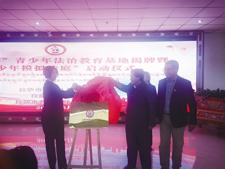 近日,由拉薩市中級(jí)人民法院、拉薩市教育局、拉薩市普法領(lǐng)導(dǎo)小組辦公室聯(lián)合舉行“德潤童心 法護(hù)蓓蕾”青少年法治宣傳教育基地揭牌暨“青少年模擬法庭”啟動(dòng)儀式。