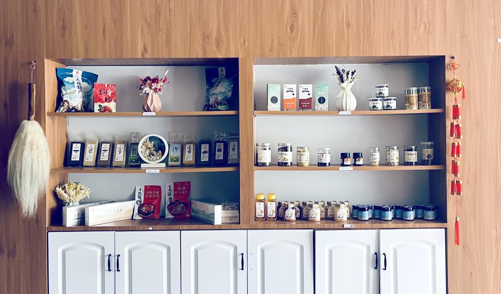 公司電商銷(xiāo)售展廳內(nèi),陳列著各式各樣的特色農(nóng)產(chǎn)品。受訪者供圖