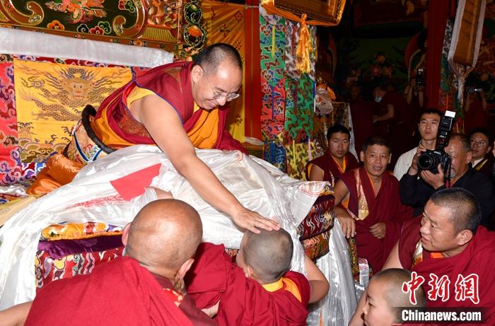 6月17日,班禪為小活佛摸頂賜福。中新社發(fā) 李林 攝