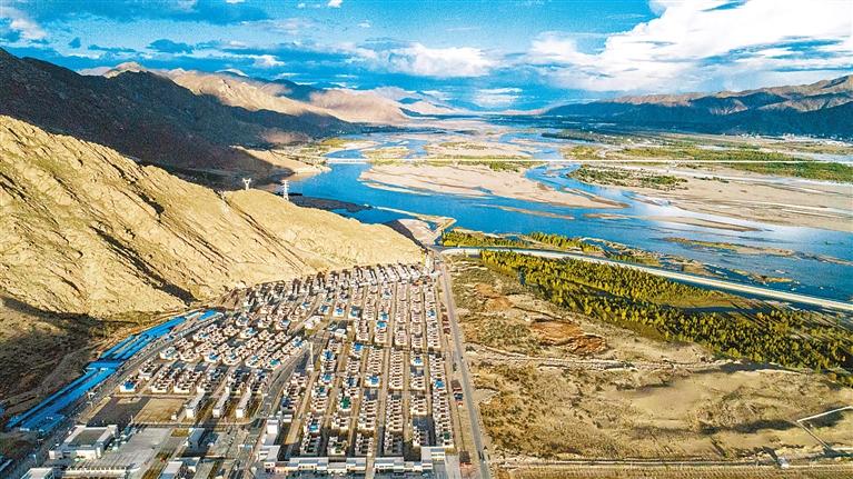 位于貢嘎縣的森布日搬遷安置點(2020年9月24日攝,無人機照片)。新華社記者 孫非 攝