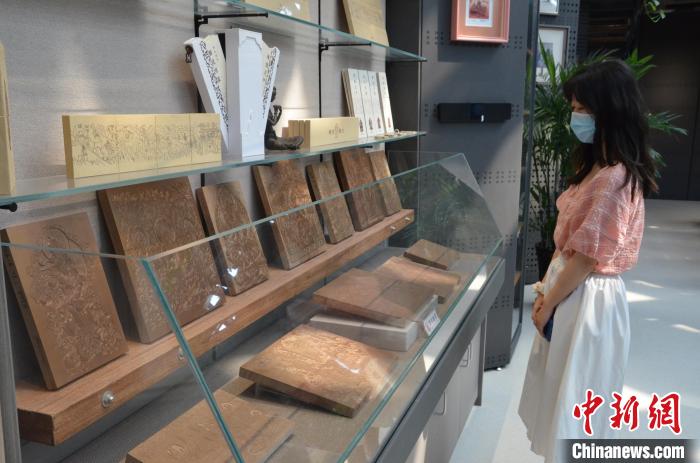 圖為參訪人員在工作室參觀敦煌題材木刻版畫。 李亞龍 攝