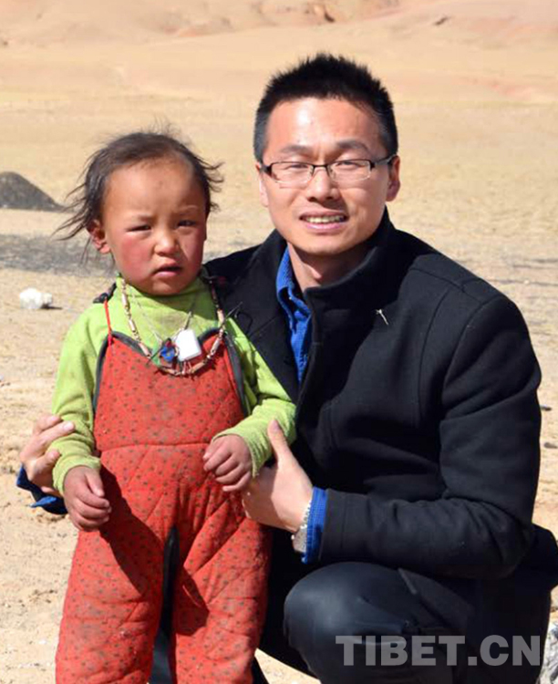 這是浙江省援藏干部唐小明在那曲“下鄉(xiāng)”時,與所幫扶牧民鎖曾的孩子合影留念(唐召明提供,2014年攝)