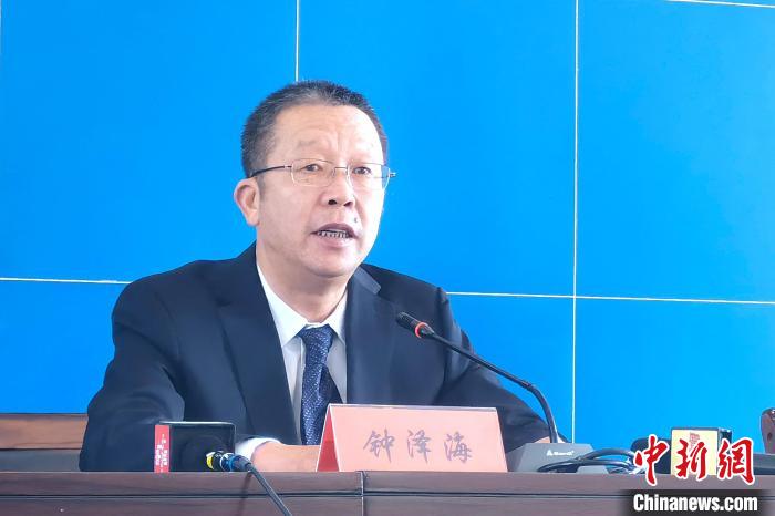 圖為青海省教育廳黨組成員、副廳長鐘澤海在新聞發(fā)布會。 李雋 攝