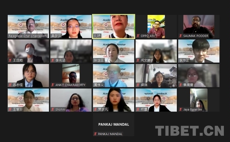 中國(guó)西藏網(wǎng)訊 10月9日下午,西藏民族大學(xué)中國(guó)(西藏)邊疆貿(mào)易研究所與印度加爾各答大學(xué)南亞、東南亞研究所在云端開(kāi)展主題為“增進(jìn)了解,促進(jìn)友誼”的活動(dòng)。來(lái)自西藏民族大學(xué)與加爾各答大學(xué)的二十余位專(zhuān)家學(xué)者、中印師生相聚云端,開(kāi)啟在線交流互動(dòng)。