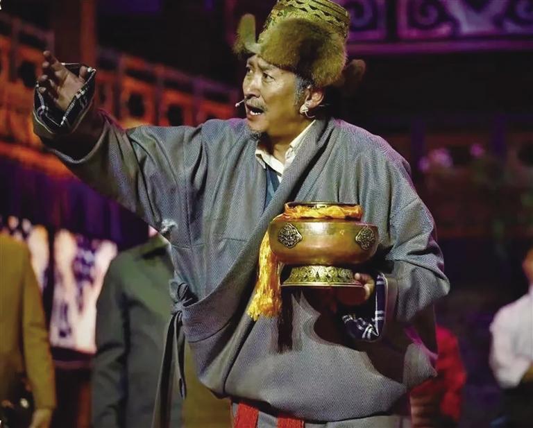 為了演好這個(gè)角色,他嘗試了許多新的表演手法,也借鑒了一些藏戲表演的元素,比如將藏戲唱腔、六弦琴?gòu)椬嗟热谌氲絼∏橹?,通過(guò)不同的唱腔、琴聲充分展示故事情節(jié)和人物的內(nèi)心世界,與此同時(shí),這些藝術(shù)手法也使他的表演具有更大的張力與魅力。