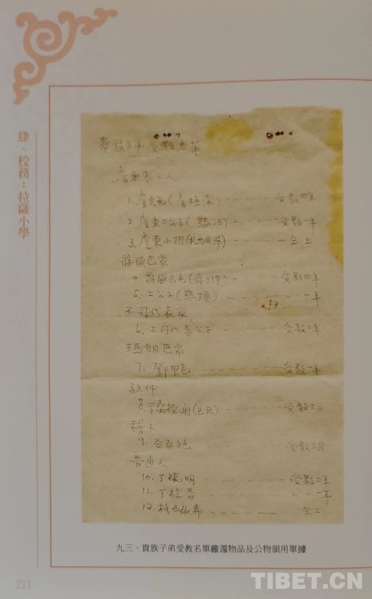 這期間,因?yàn)閷W(xué)校成績斐然,影響大增,不少貴族子弟也慕名前來就讀。拉薩小學(xué)專設(shè)一個特別班,招收貴族、富商的孩子,他們的教學(xué)是漢藏文一起上。在這個班里先后就讀的貴族子弟不少。如詹東家族的三兄妹,即詹東色、詹東·慈汪、詹東·扎西曲準(zhǔn)。詹東色有個漢語名字,叫詹逢春(又稱詹植棠。他是個對中華文化非常喜愛的貴族子弟,會一口流利的四川話,還跟阿旺堪布的一位漢族徒弟學(xué)會了唱京戲。他曾在蒙藏委員會委員長吳忠信進(jìn)藏主持達(dá)賴?yán)镒驳涠Y時,全力給予了幫助。此外,在拉薩小學(xué)上學(xué)的還有瑪朗巴”家族、“稽卜”家族的子弟。十四世達(dá)賴的二哥嘉樂頓珠也曾在這里學(xué)習(xí)過。其他還有邊覺、唐麥、夏扎、雪貴巴等的子女。