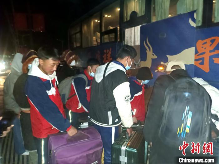 在地處數(shù)百公里外的西寧的青海省三江源民族中學(xué)就讀的初二學(xué)生合熱,一大早穿著過年新買的衣服,推著行李箱,早早到了指定乘車點。