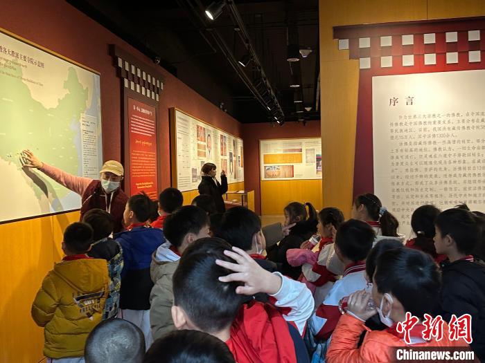 圖為活動當天西藏文化博物館的志愿者們帶領小朋友參觀館內(nèi)展覽?!±铌涎?攝