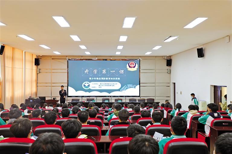 一堂“交通安全”課、一堂“禁毒知識”課、一堂“法治教育”課……活動(dòng)中,民警們通過播放視頻、以案說法、現(xiàn)場演示等多種教學(xué)形式,用通俗易懂的語言,直觀生動(dòng)的講解,熱烈輕松的互動(dòng),為同學(xué)們送上法律知識、交通安全、禁毒、反詐等“知識大禮包”。