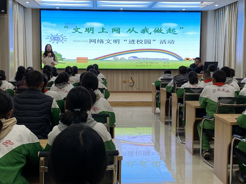 為深入學(xué)習(xí)貫徹黨的二十大精神,全面推進(jìn)網(wǎng)絡(luò)文明建設(shè),引導(dǎo)達(dá)孜區(qū)中小學(xué)生從自身做起,文明上網(wǎng)、健康用網(wǎng),強(qiáng)化網(wǎng)絡(luò)空間的思想引領(lǐng),4月24日,達(dá)孜區(qū)委網(wǎng)信辦聯(lián)合達(dá)孜區(qū)中學(xué)開展以“文明上網(wǎng) 從我做起”為主題的網(wǎng)絡(luò)文明“進(jìn)校園”活動(dòng)。