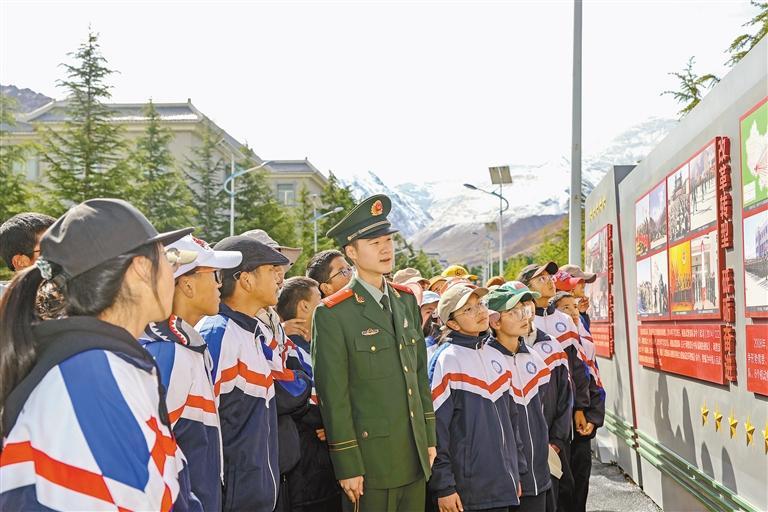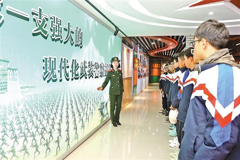 武警官兵帶領(lǐng)學(xué)生參觀營(yíng)區(qū)。索朗旺堆 記者 旦增蘭澤 攝
