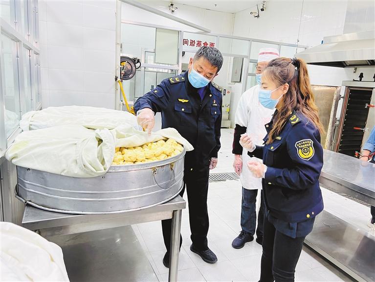 拉薩市市場監(jiān)管局執(zhí)法人員對學生早餐進行檢查。記者 央金 攝
