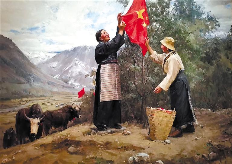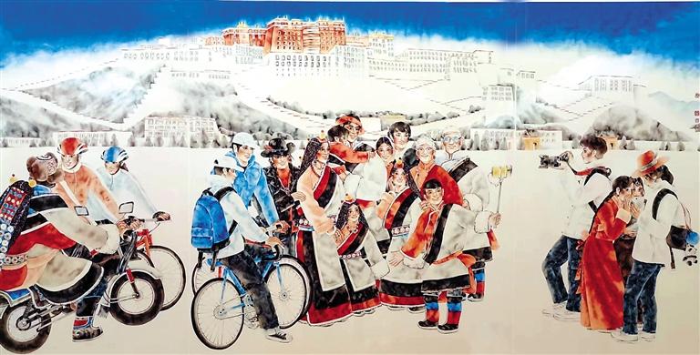 隨著一系列支持政策的持續(xù)推進和西藏各族兒女的團結(jié)奮斗,西藏的經(jīng)濟發(fā)展和民生水平都得到了大幅度提升。同時,關(guān)注西藏發(fā)展現(xiàn)實、進行美術(shù)創(chuàng)作的藝術(shù)家日漸增多,一件件優(yōu)秀美術(shù)作品應(yīng)運而生,并且在全國重要展覽中精彩呈現(xiàn),向人們?nèi)?、立體地展現(xiàn)了新時代西藏人民生活的美好圖景。2022年秋季在中國美術(shù)館展出的“第13屆中國藝術(shù)節(jié):全國優(yōu)秀美術(shù)作品展覽”中,有大量表現(xiàn)西藏民族風情和民生發(fā)展題材的美術(shù)作品,從作品構(gòu)思到藝術(shù)表現(xiàn),體現(xiàn)出鮮明的民族文化特色和民生繁榮景象,展現(xiàn)出美術(shù)創(chuàng)作者深植心底的鑄牢中華民族共同體意識創(chuàng)作理念。