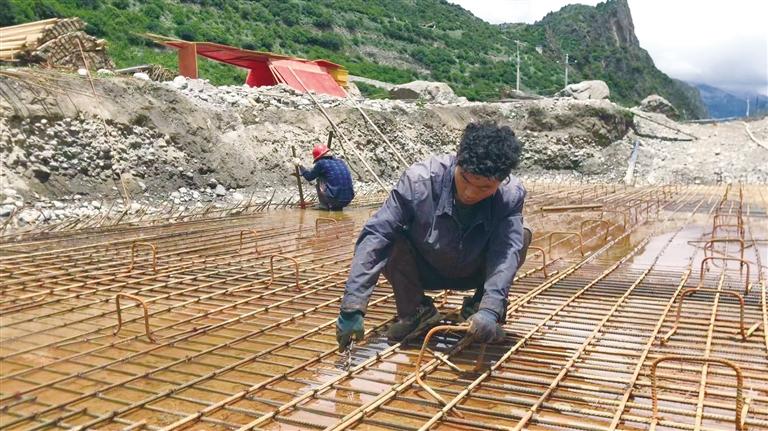 扎西達(dá)瓦正在工地上扎鋼筋。 圖由扎西達(dá)瓦提供